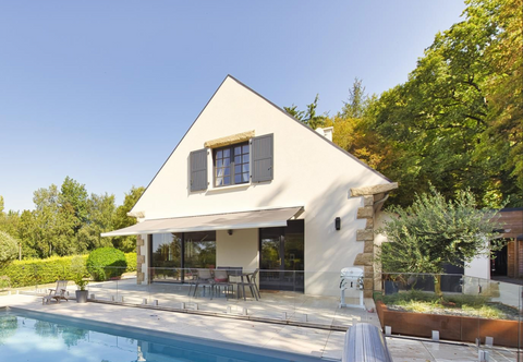 * Extérieur : Rafraîchissement de la façade, changement de toutes les menuiseries extérieures avec création d'une grande baie vitrée, création d'une piscine et d'un coin cuisine extérieure couvert et aménagement extérieur complet (terrasse, végétation...)